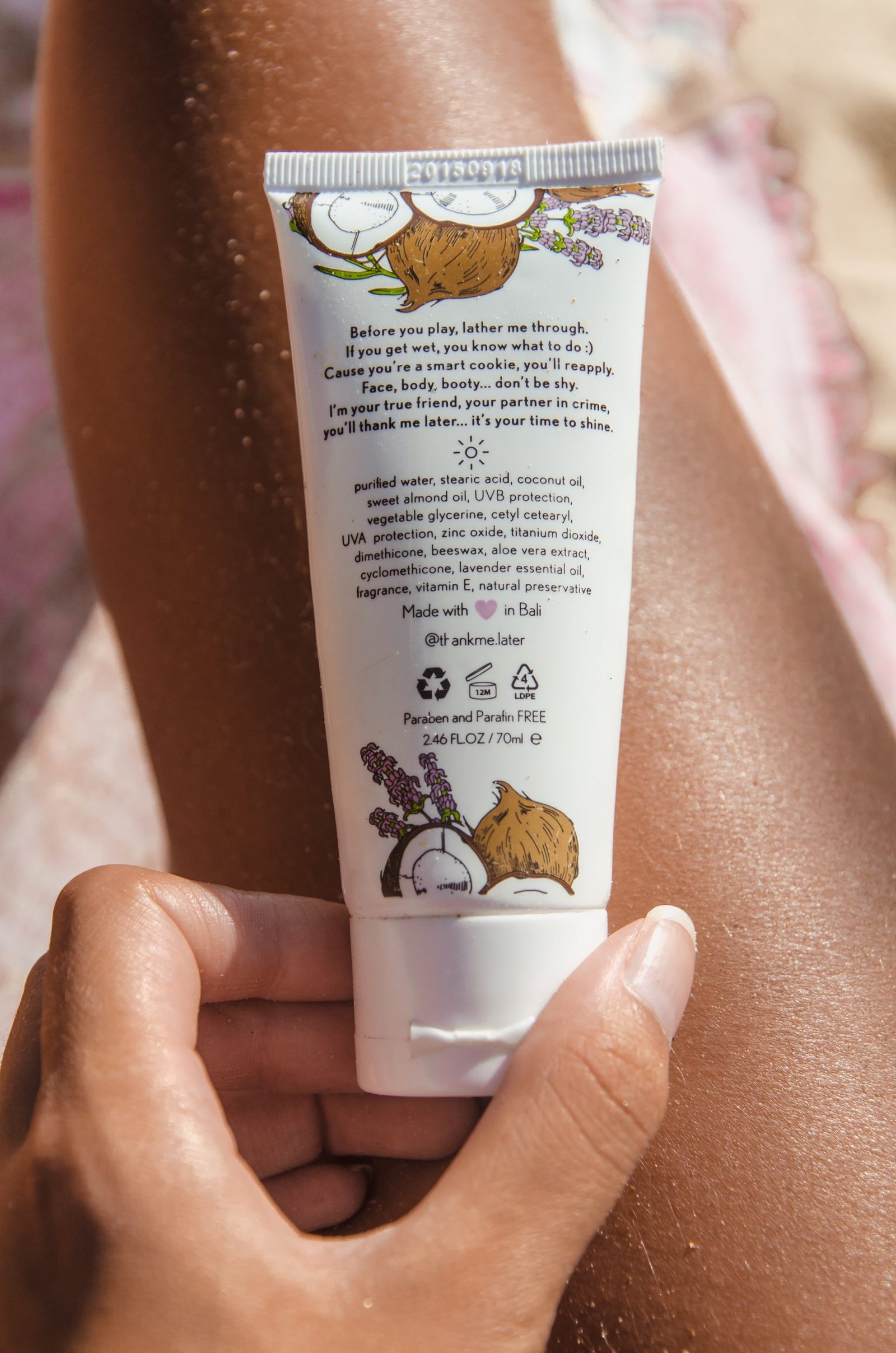 Earlier this year, I discovered the brand Thank Me Later on social networks and instantly fell in love with their natural approach. Created in Bali, TML develops sunscreens based on natural ingredients from the island. As I previously mentioned in my tips on how to get a great, deep tan, I really enjoy natural products and had been looking for a natural sunscreen with a decent price for a while, so I decided to give a chance to Thank Me Later and try their sunscreen.